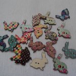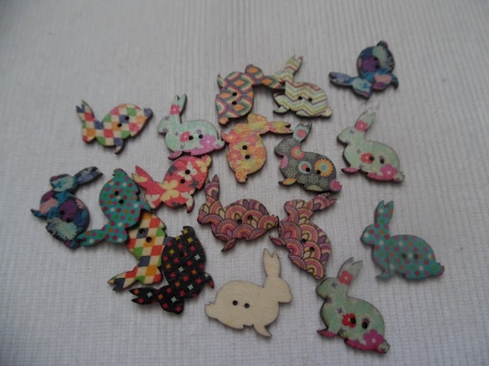 5 Boutons lapin 30x30X2.5mm mixte bois brulé multicolore