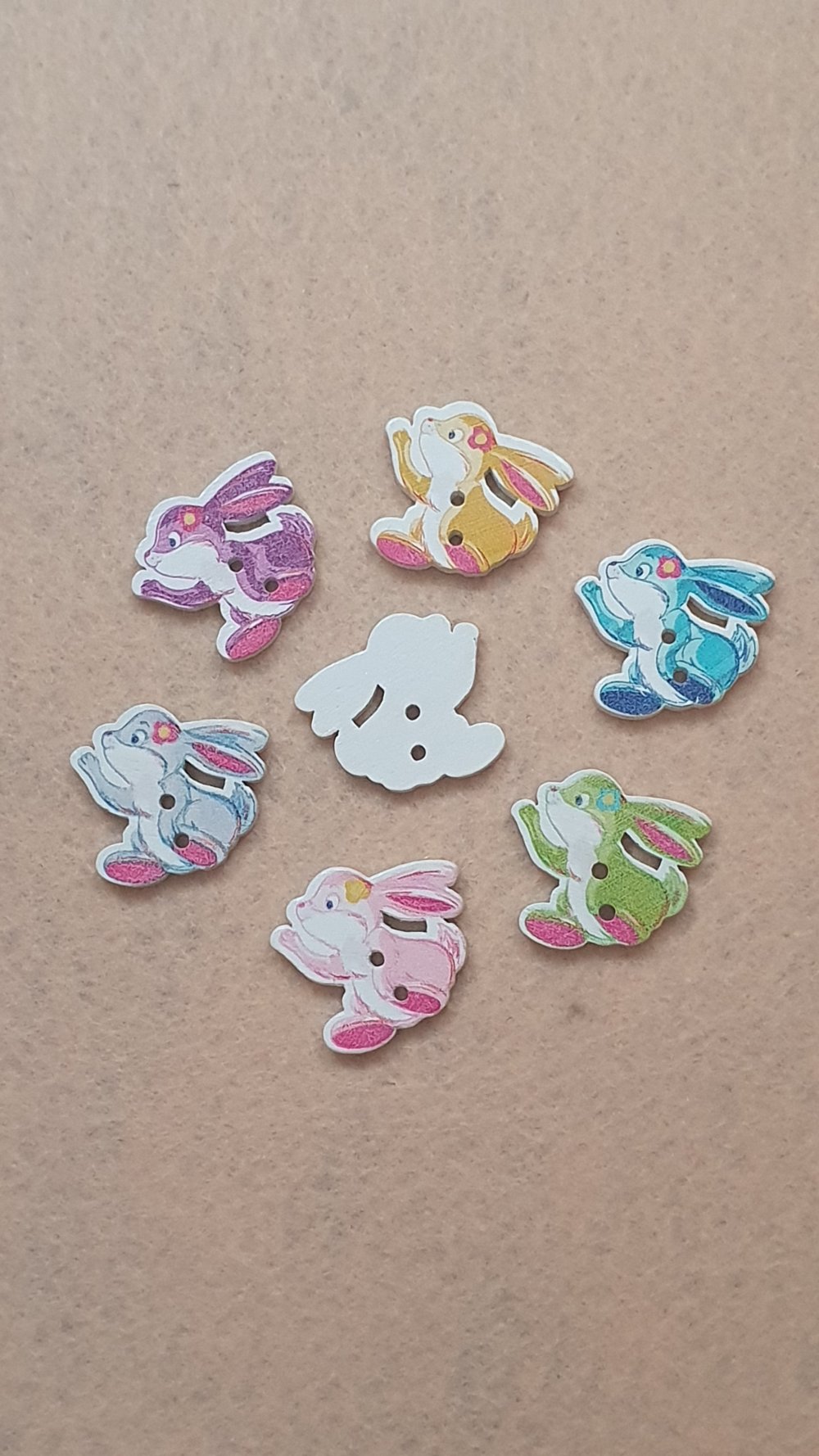 5 Boutons lapin vert 22x23.5mm bois à 2 trous