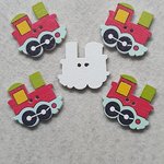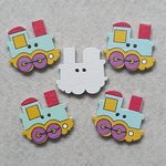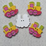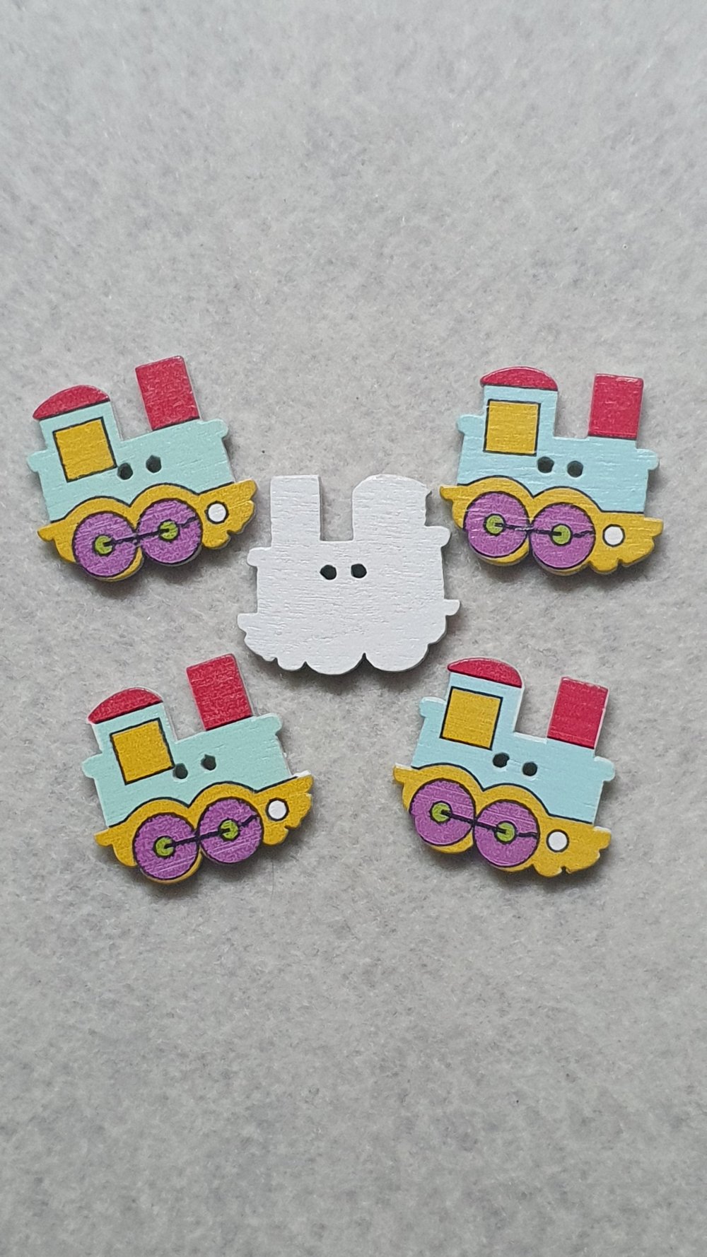 5 Boutons petit train bleu 25x22mm bois à 2 Trous