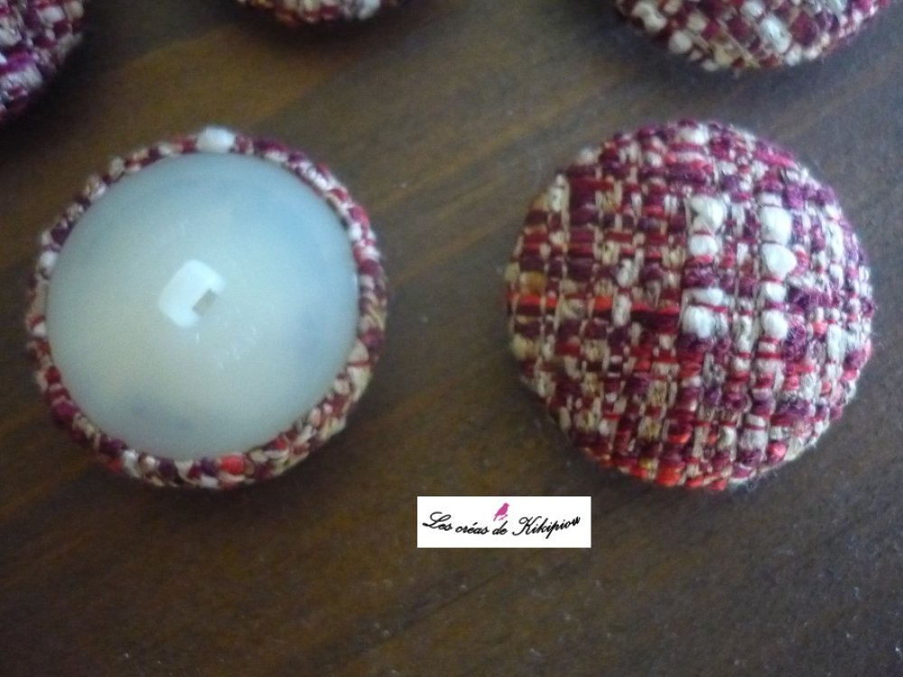 Lot de 5 boutons recouverts de tissu tweed de 36mm de diamètre
