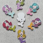 5 boutons sirène bleu cheveux mauve 30x17x2.4mm bois