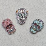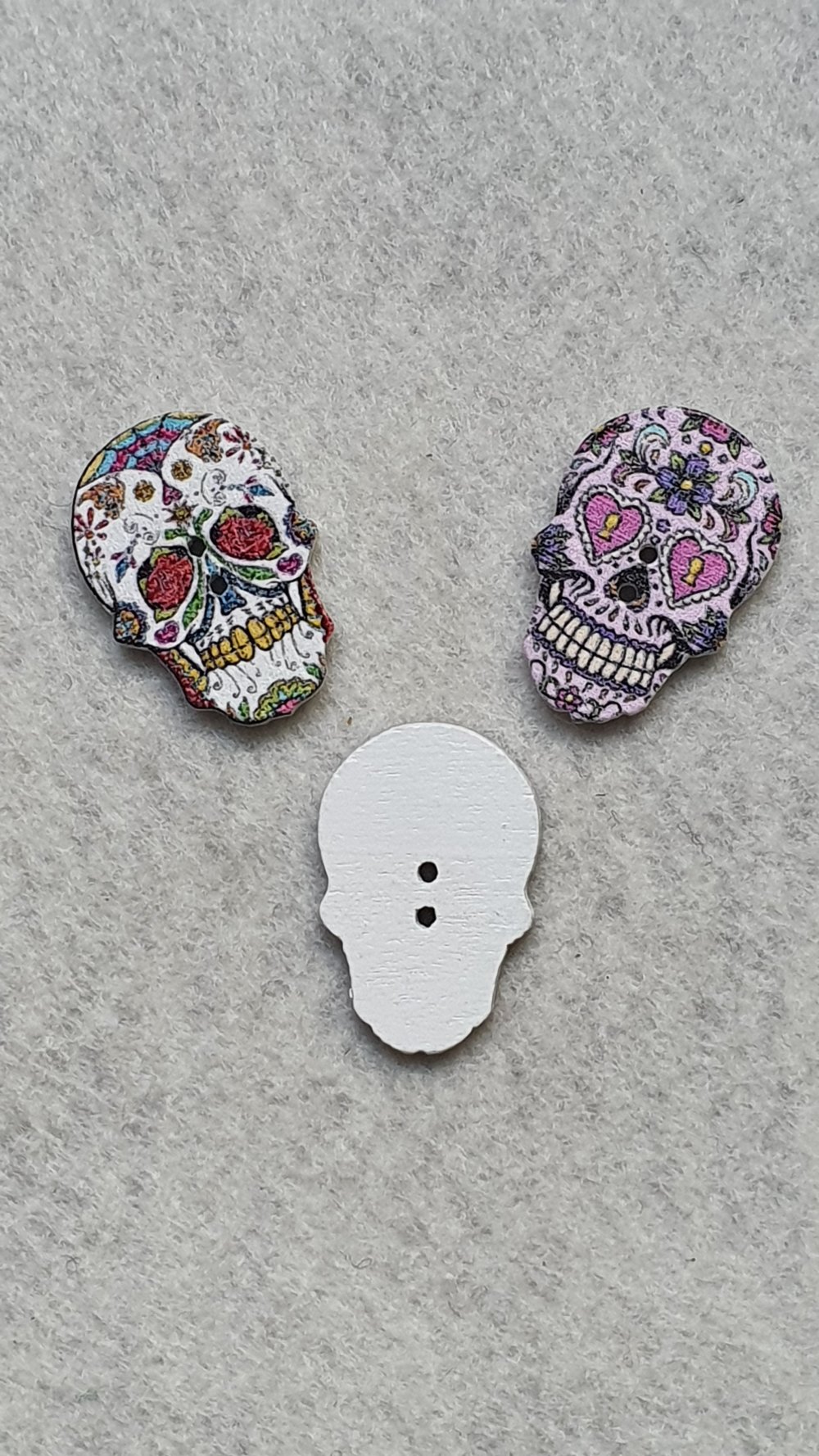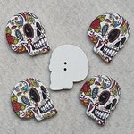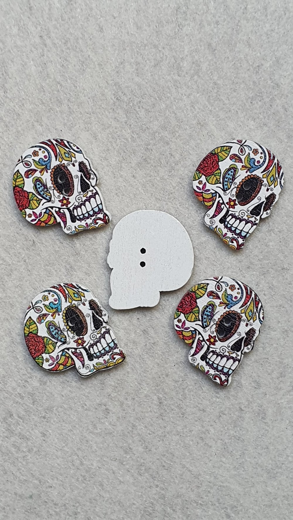5 Boutons tête de mort mauve 25x17mm bois à 2 Trous