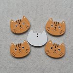 6 boutons chat chaton moutarde foncé 19.8x26x2.4mm bois