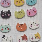 Lot de 6 boutons chat chaton vert pâle 19.8x26x2.4mm bois à 2 trous