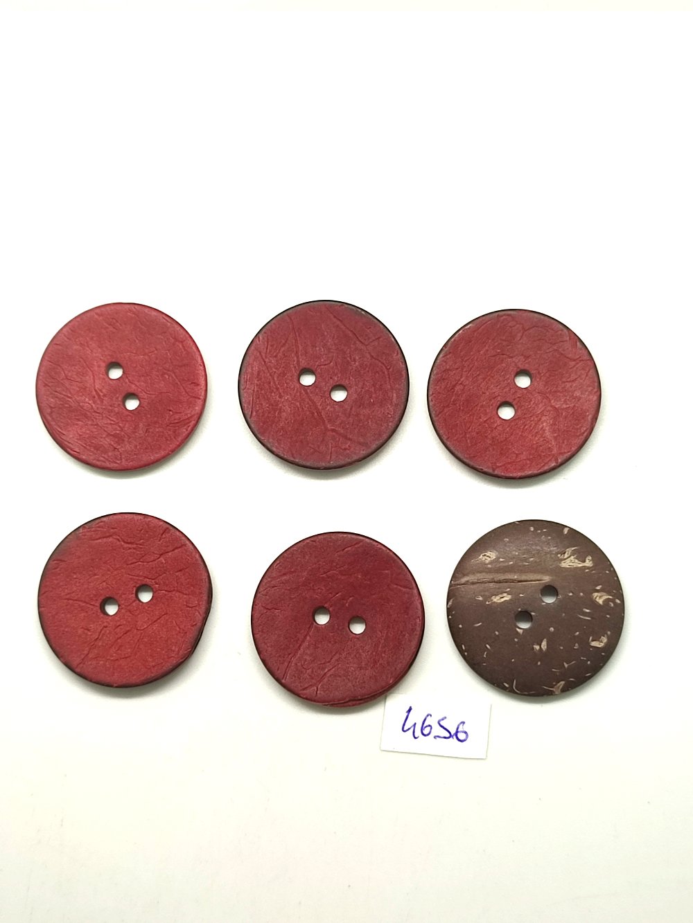 6 Boutons en coco rouge foncé / marron - 30mm - TR4656