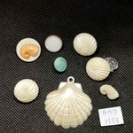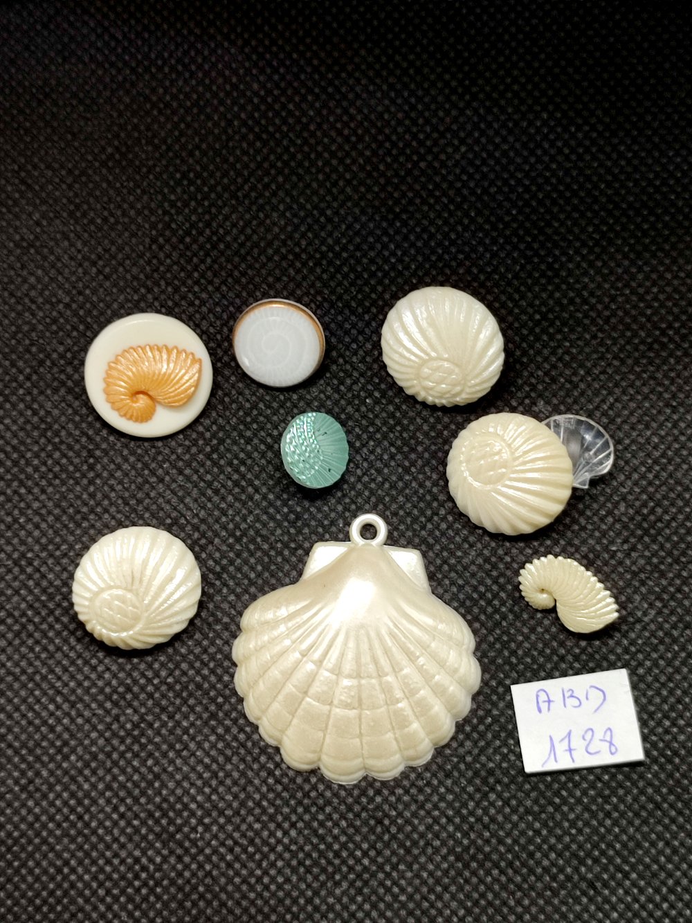 6 Boutons fantaisie en résine blanc et bleu - coquillage - taille diverse - ABD1728
