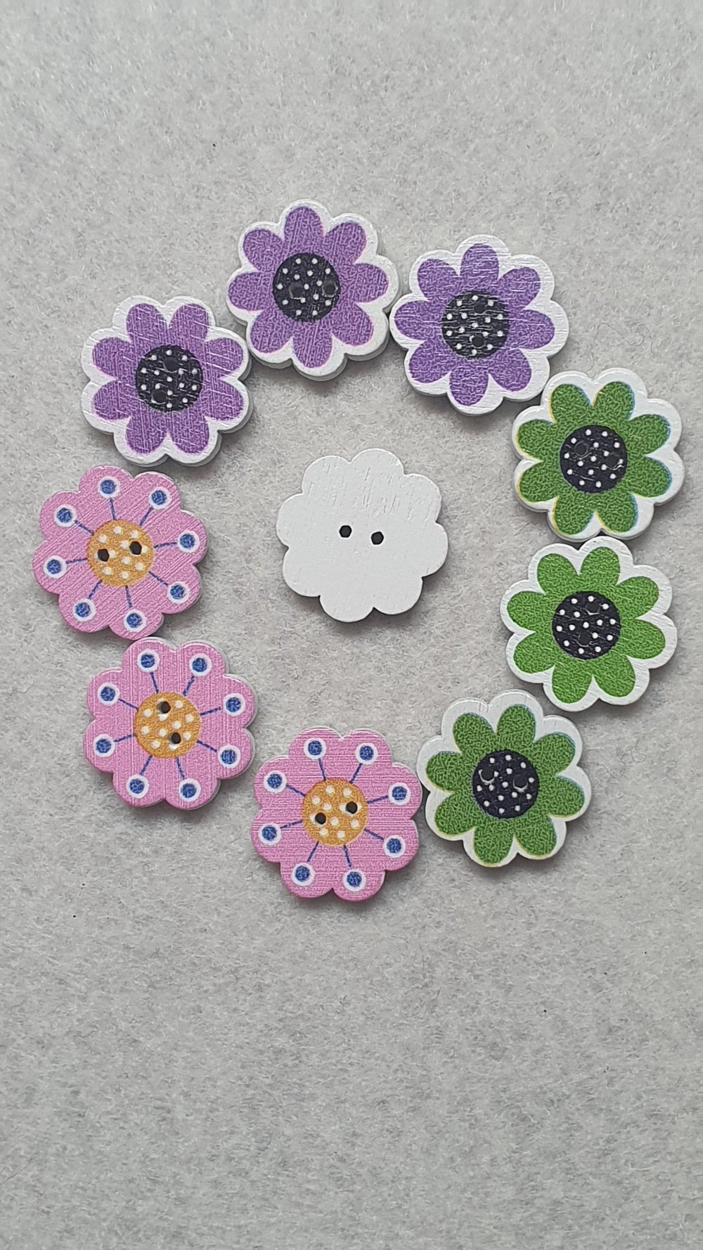 Lot de 6 Boutons fleurs bleu rouge 20x3mm bois