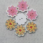 Lot de 6 Boutons fleurs vert orange 20x3mm bois