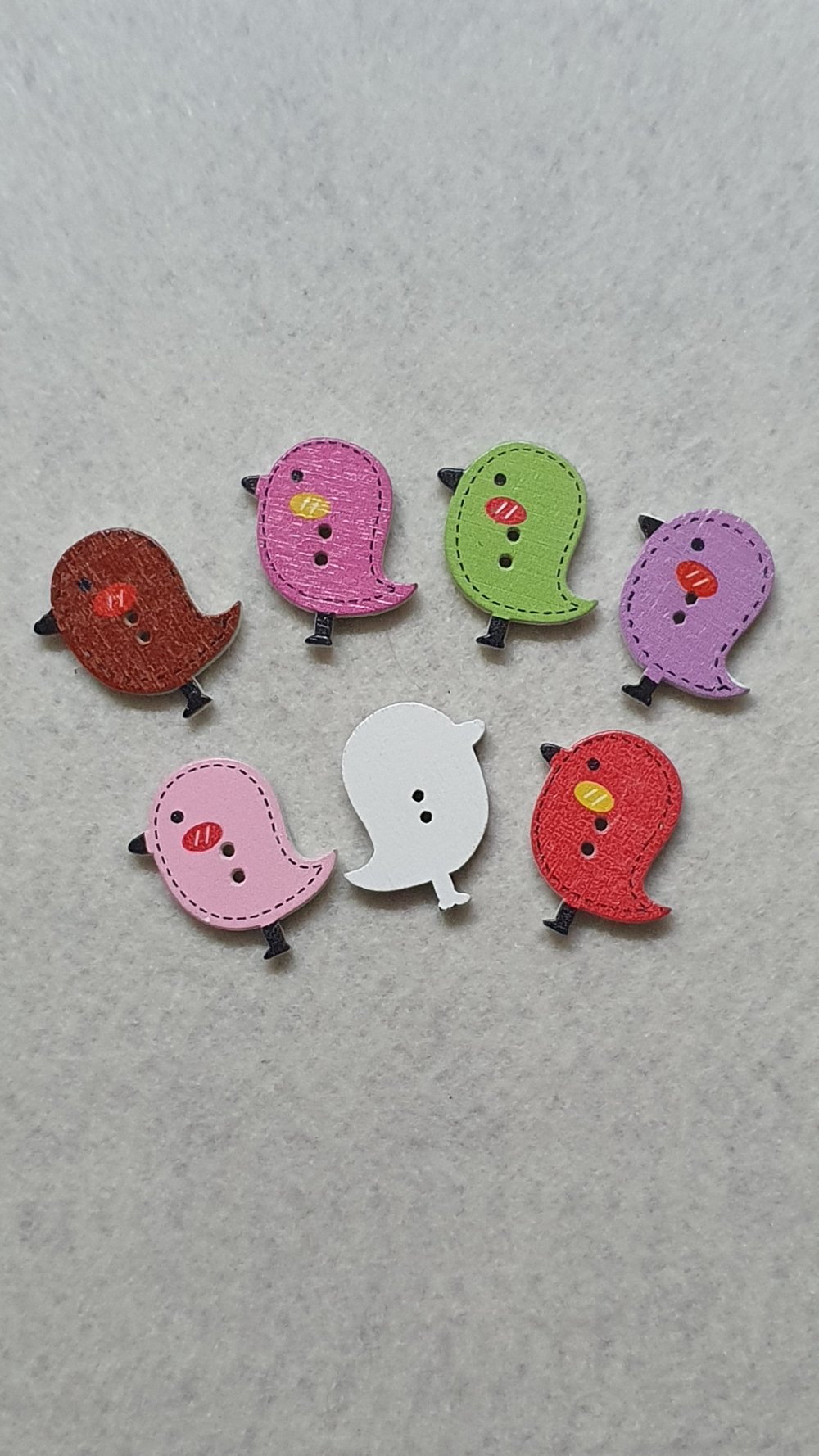 6 Boutons oiseau poussin bronze cuivre 26x24mm bois à 2 Trous