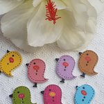 6 Boutons oiseau poussin bronze cuivre 26x24mm bois