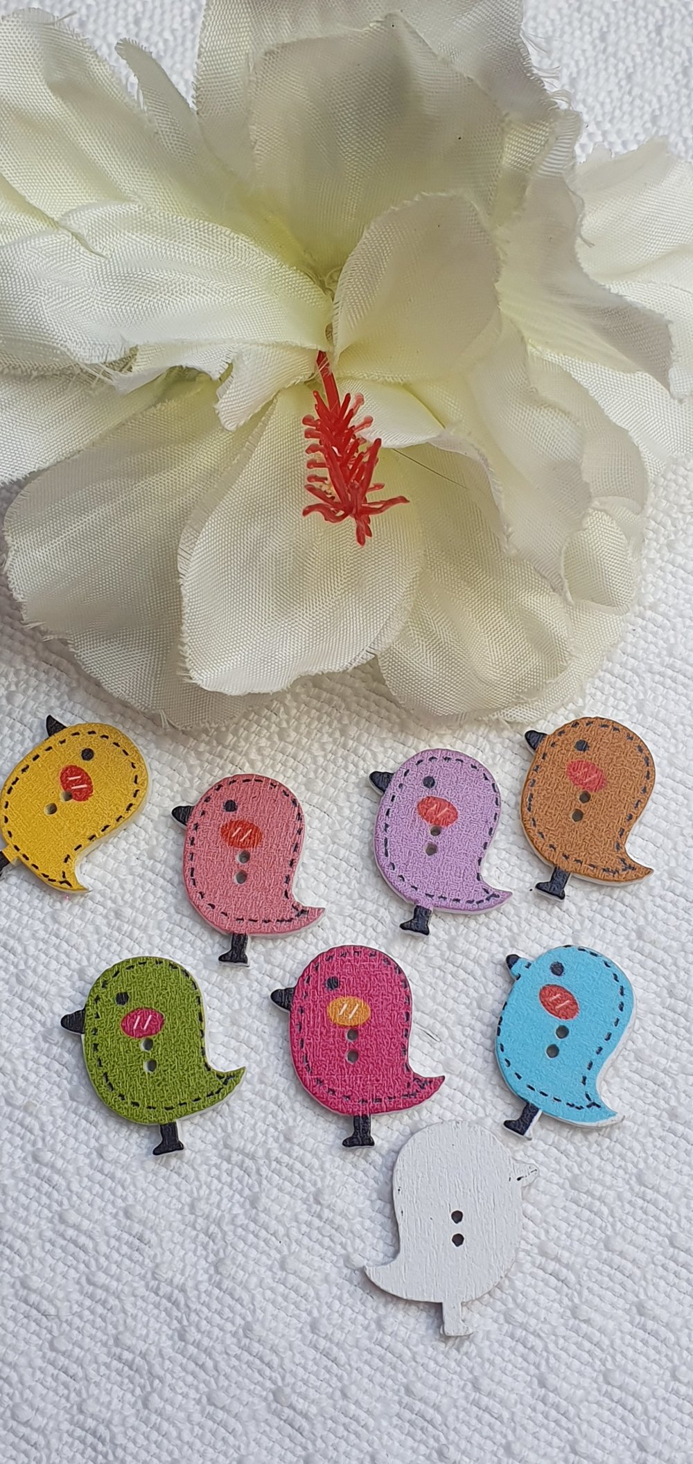 6 Boutons oiseau poussin fuchsia 26x24mm bois à 2 Trous