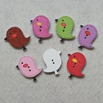 6 Boutons oiseau poussin fuchsia 26x24mm bois