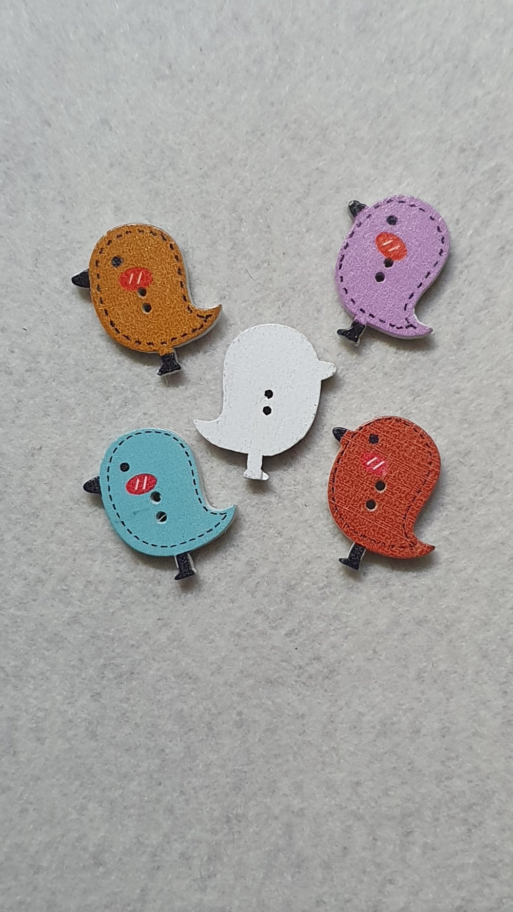 6 Boutons oiseau poussin vert 26x24mm bois