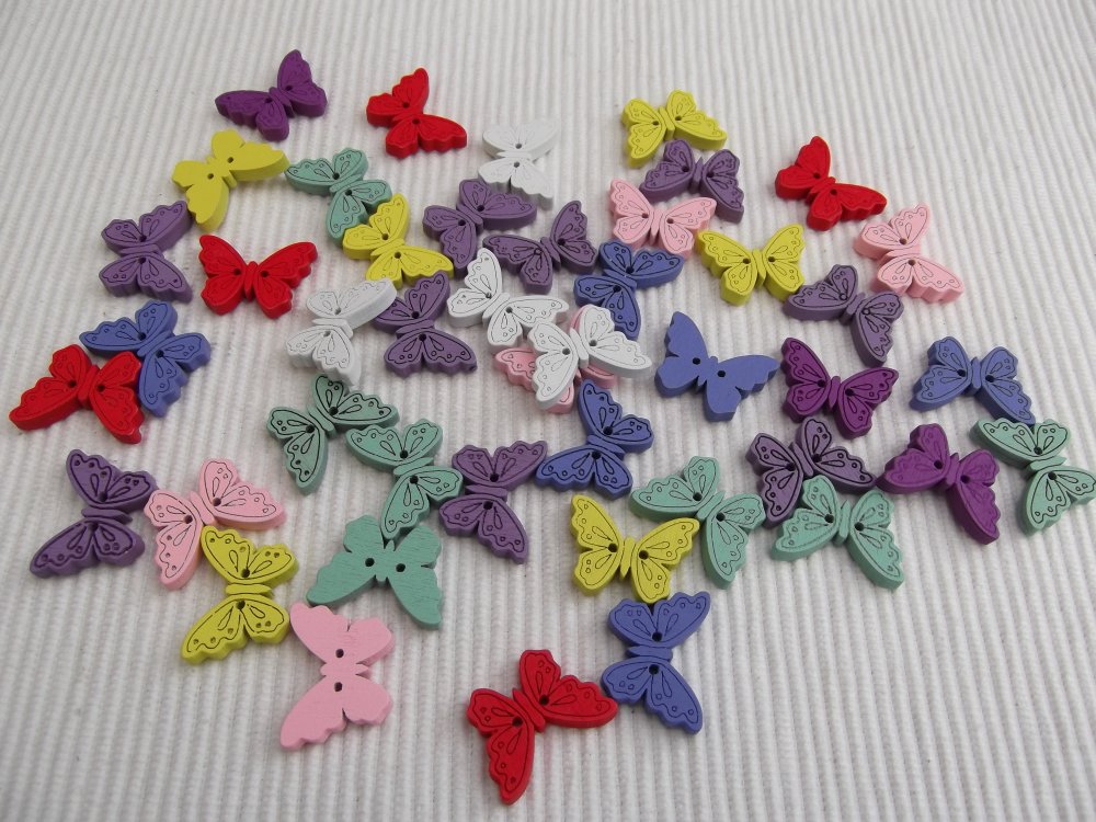Lot de 6 Boutons papillon jaune 24x18x4mm bois