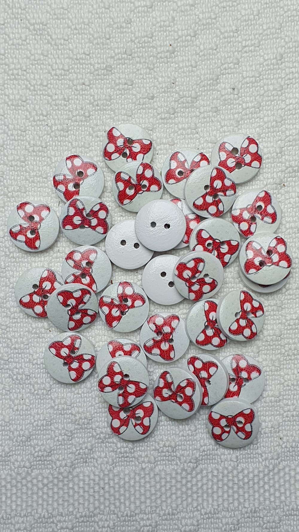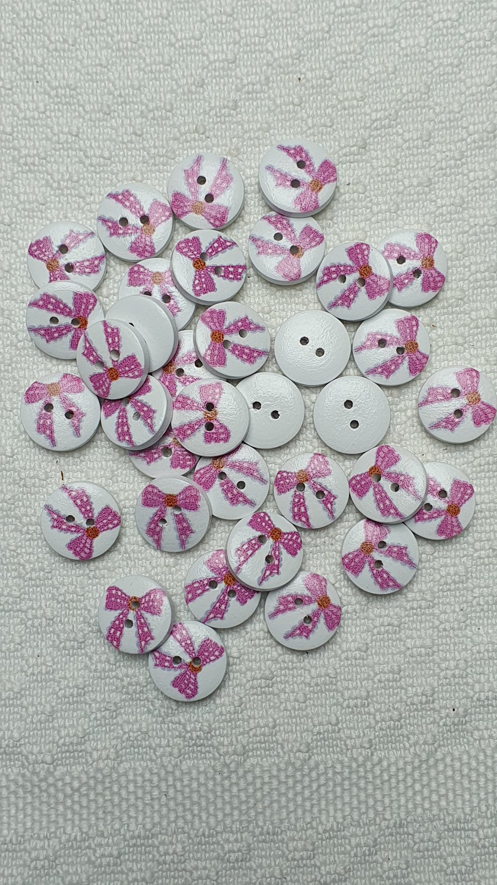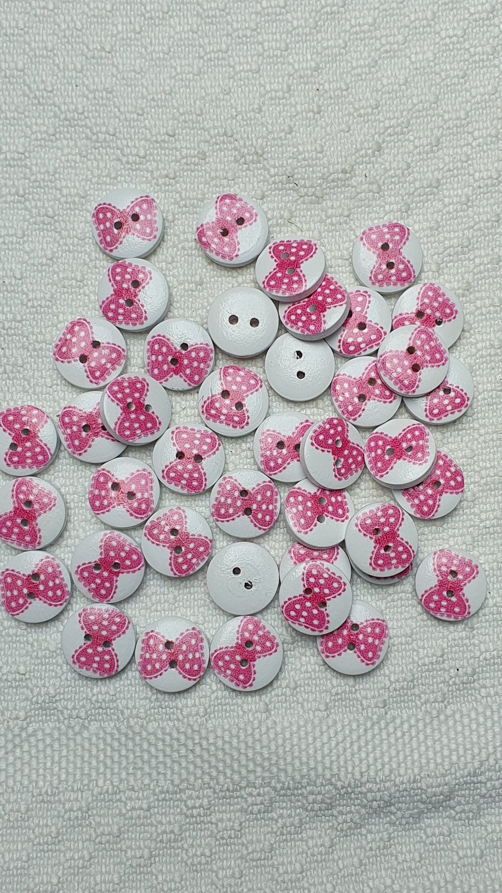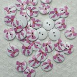 6 boutons petit noeud rose à pois de 15x3mm en bois à 2 trous .