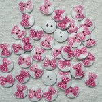 6 boutons petit noeud rouge à pois de 15x3mm en bois à 2 trous .