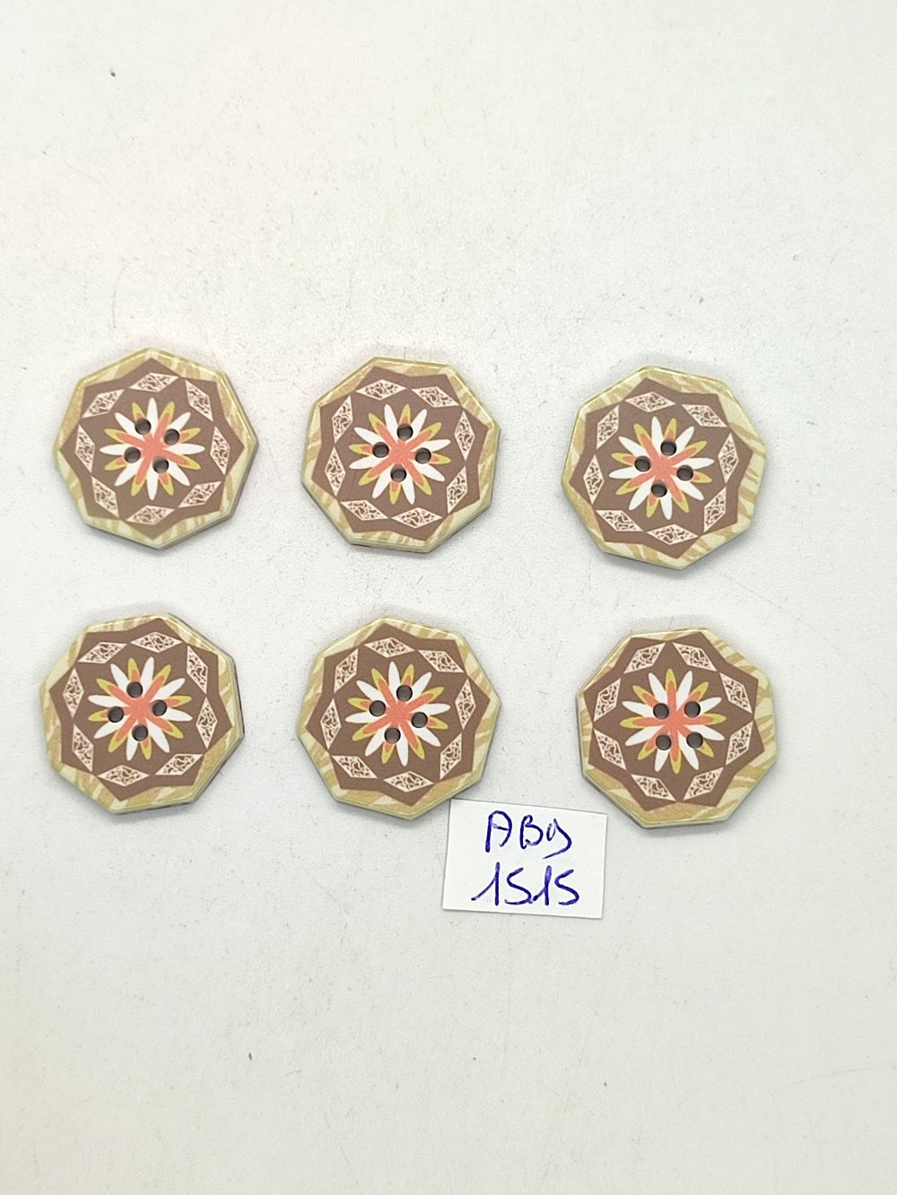 6 Boutons résine marron et orange- 21mm - ABD1515