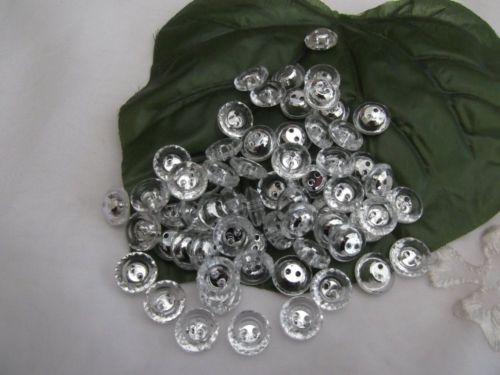 Lot de 6 boutons rond (cuvette) 12x5mm brillant argenté transparent 2 trous Acrylique 12x5mm