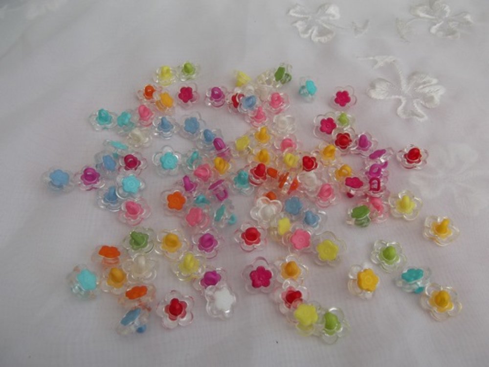 Lot de 6 boutons transparent rose fleur 14mm acrylique 1 trou plat. Plusieurs couleurs dans la boutique