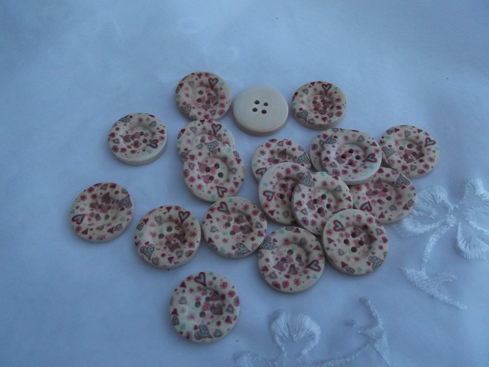 6 gros boutons fleur 25x4mm boisbeige multicolore
