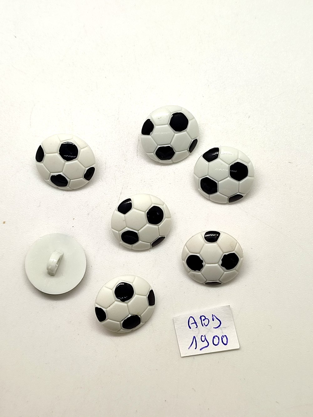 7 Boutons fantaisie en résine - ballon de foot noir et blanc - 18mm - ABD1900