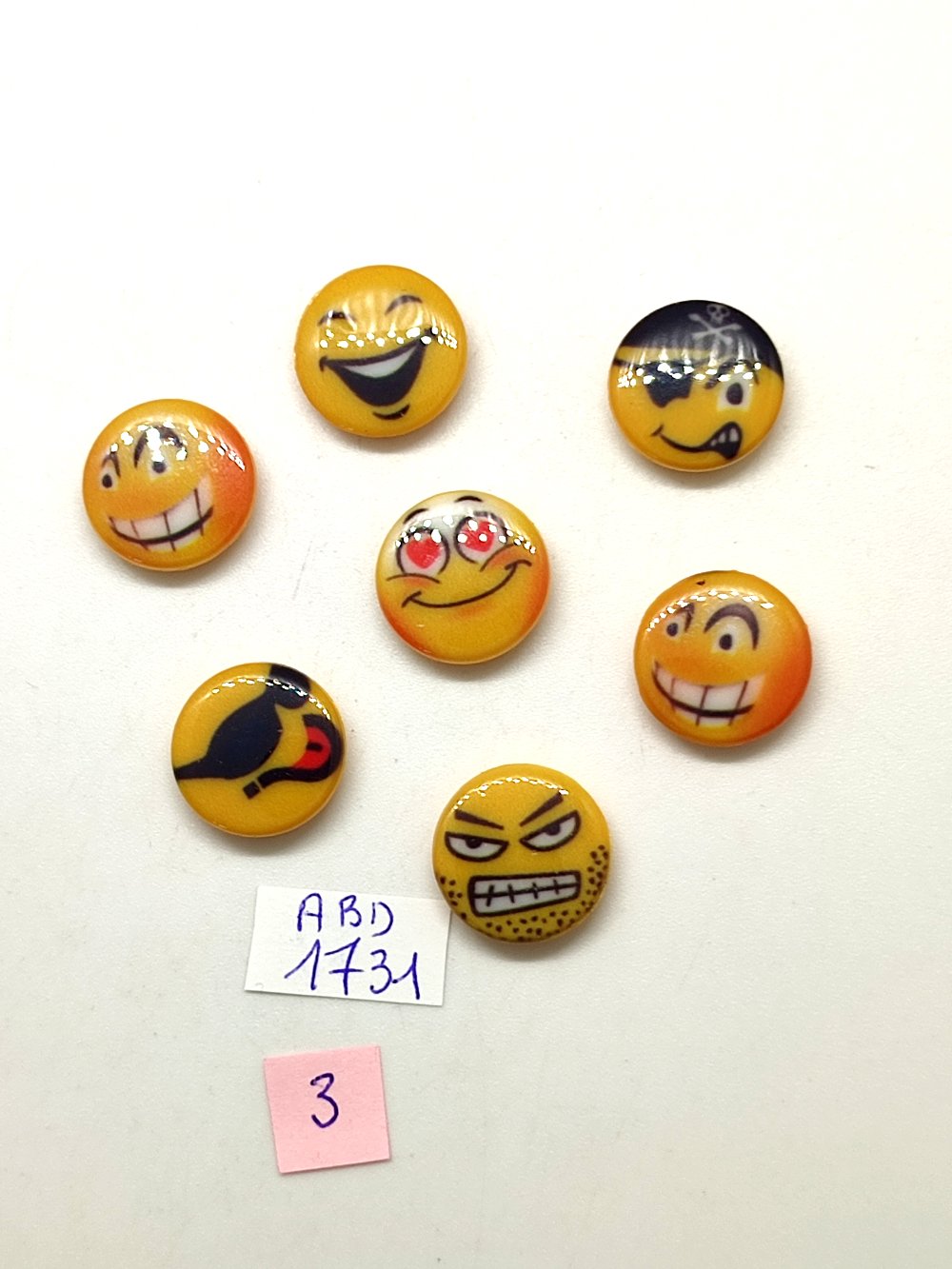 7 Boutons fantaisie en résine multicolore - 15/16mm - ABD1731-3