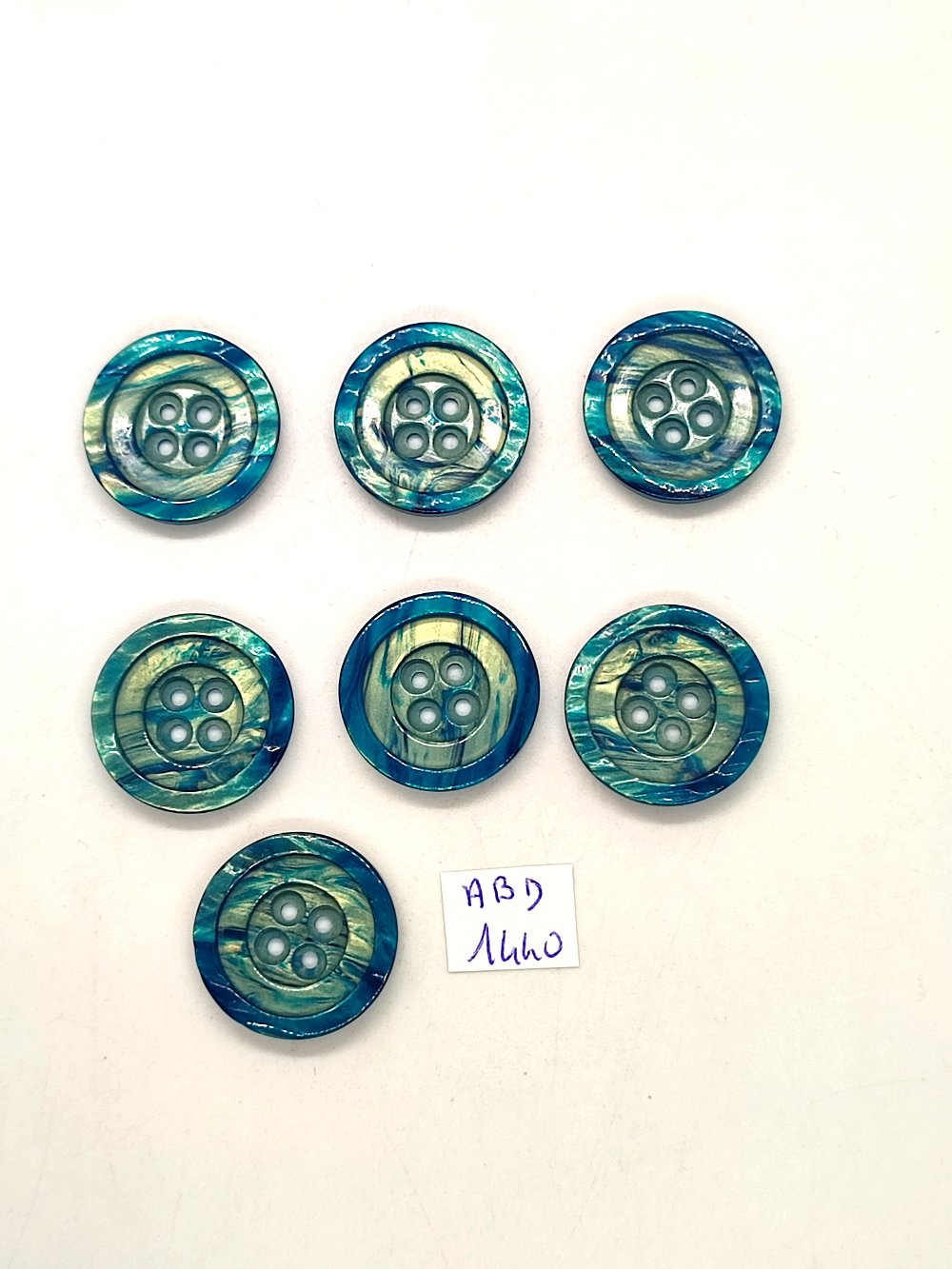 7 Boutons résine bleu / vert - 23mm - ABD1440