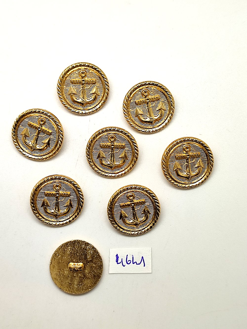 8 Boutons en résine doré - une ancre - 21mm - TR4641