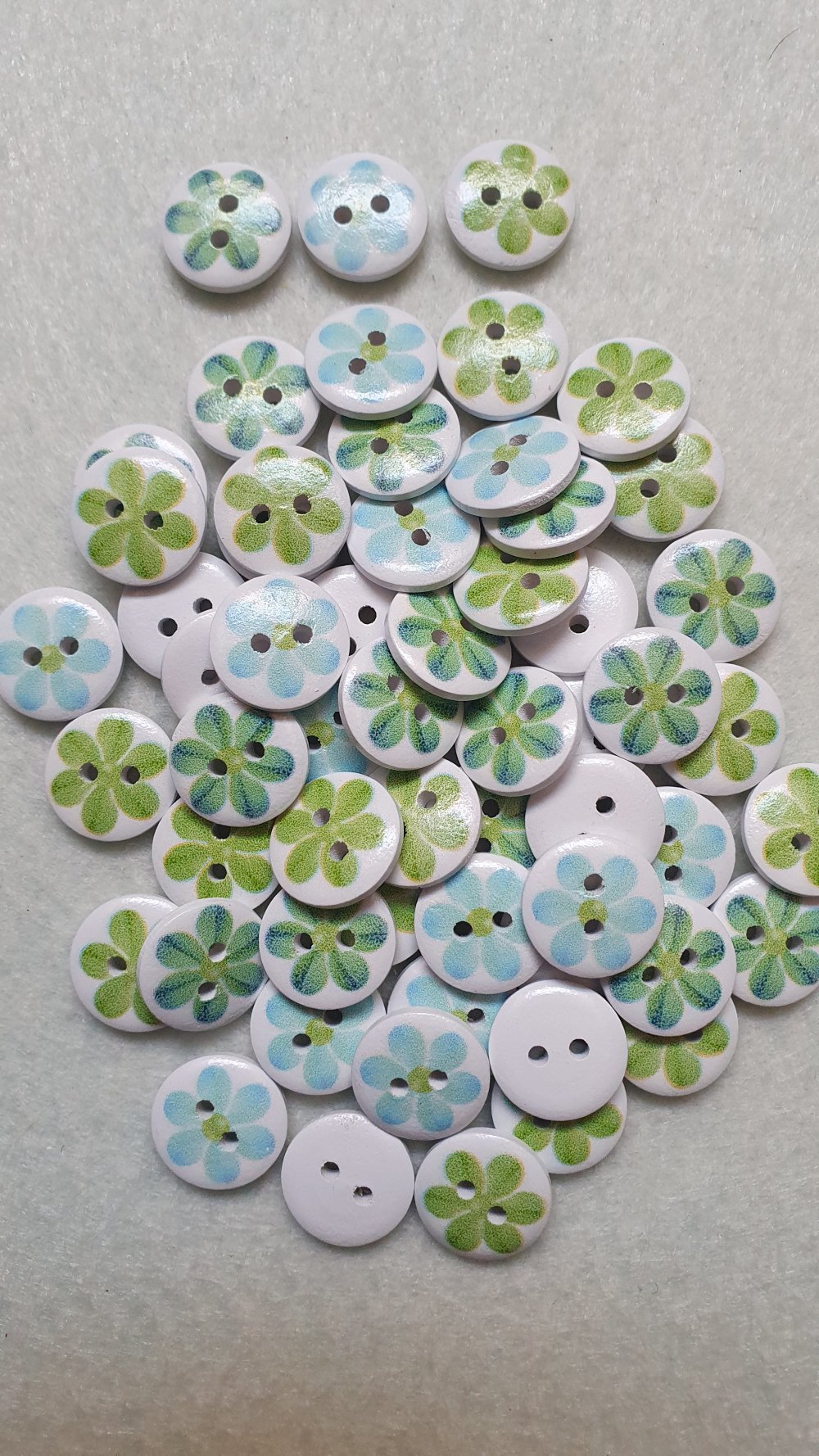 8 boutons fleur bleu bois 15mm . Plusieurs couleurs dans la boutique