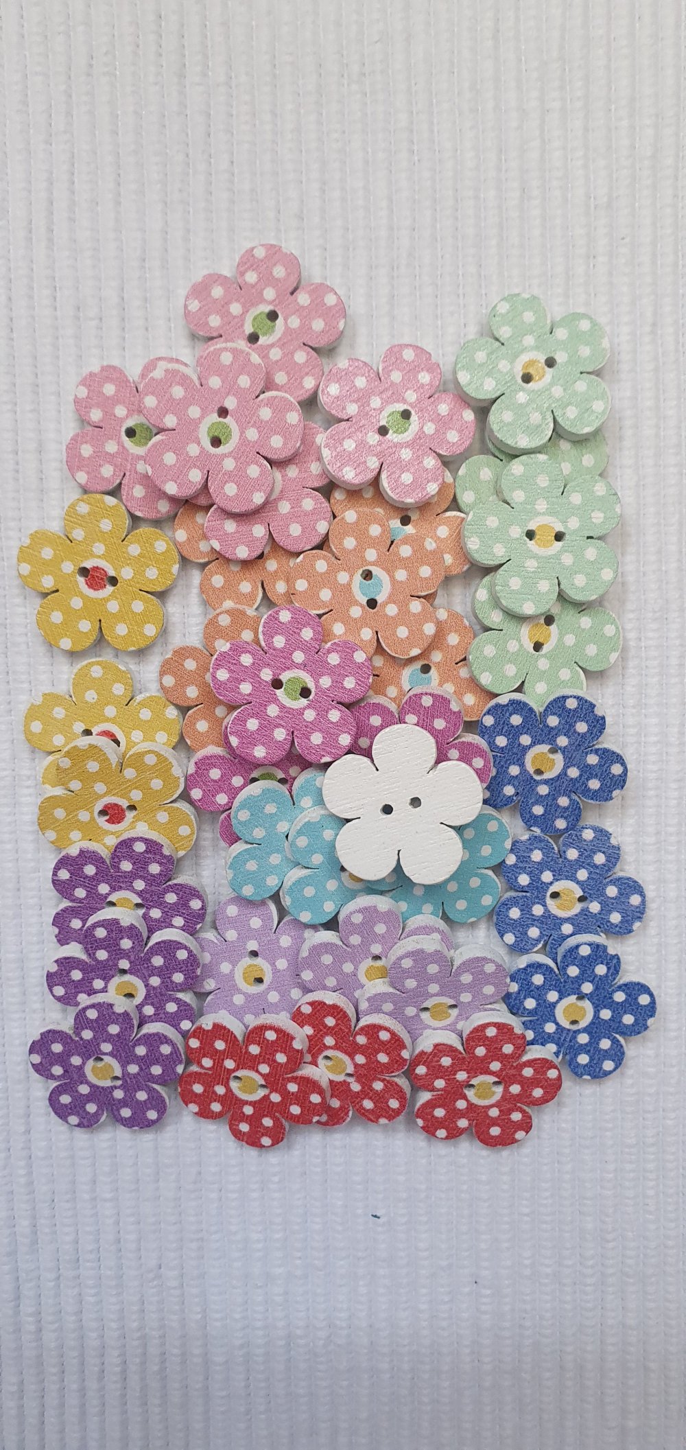 Lot de 8 boutons fleur vert à pois 20x2.3mm bois 2 trous