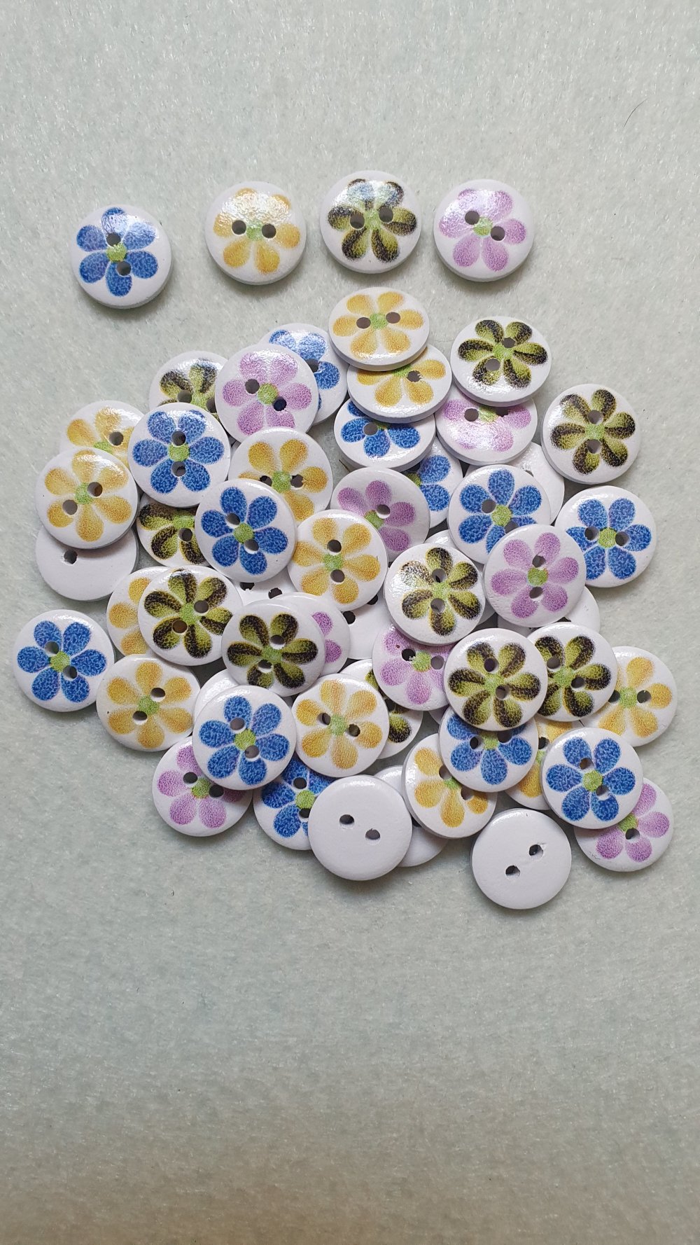 8 boutons fleur violet bois 15mm . Plusieurs couleurs dans la boutique