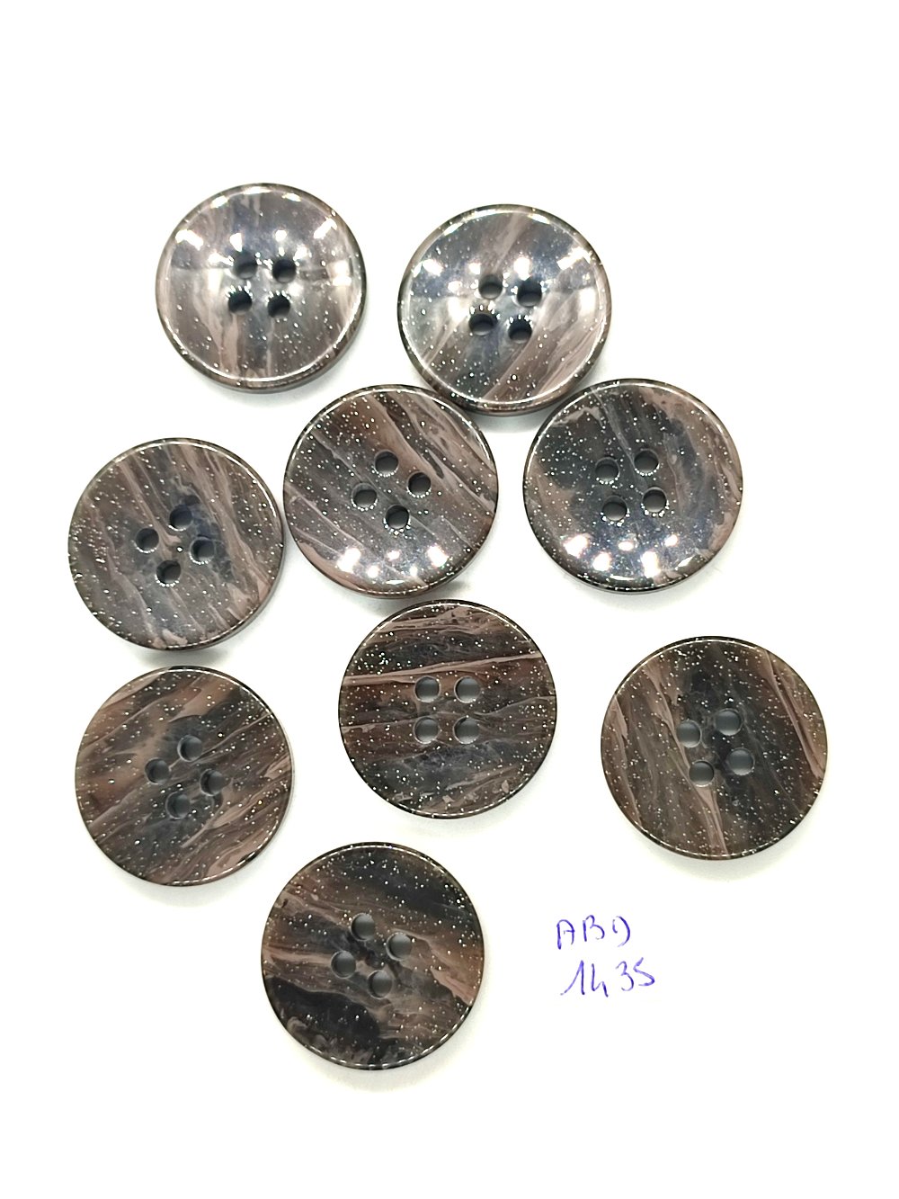 9 Boutons résine marron pailleté - 27mm - ABD1435