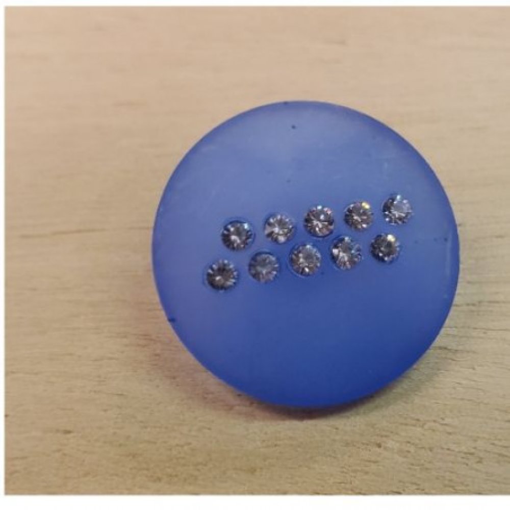 Bouton à coudre incrusté de petits strass bleu – 28 mm.