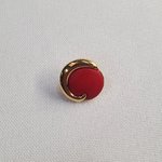 La profondeur du rouge est ici magnifiée par une courbe dorée étincelante qui semble enlacer le bouton.