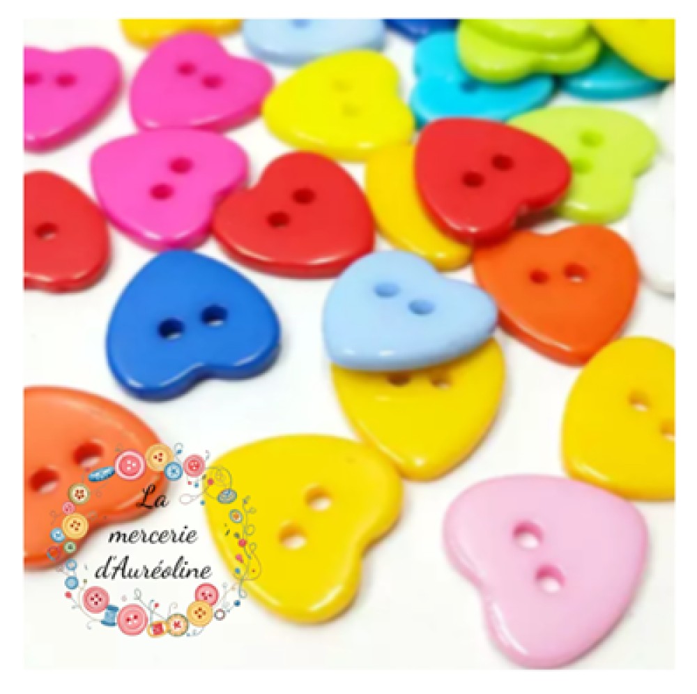 Boutons à coudre en forme de cœur de couleur unie