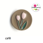 Idéal pour toutes vos créations de couture, voici un bouton rond en plastique avec motif tulipe sur le dessus.