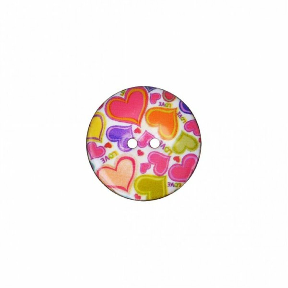 Bouton coco décoré cœurs 34mm