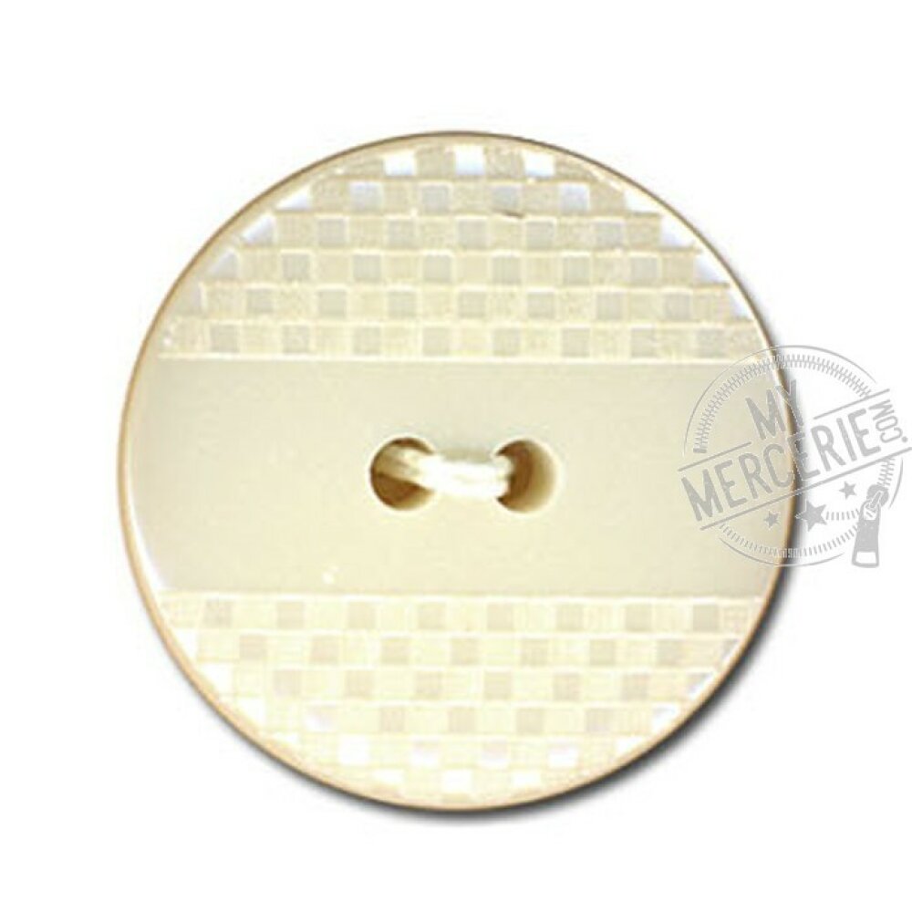 Bouton polyester effet quadrillé et lisse couleur Blanc