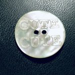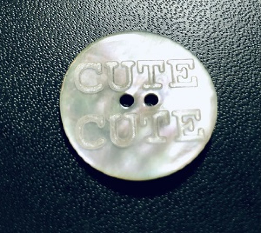Bouton rond en nacre à message gravé "CUTE CUTE" ; Bouton à coudre d'un diamètre de 25mm à 2 trous