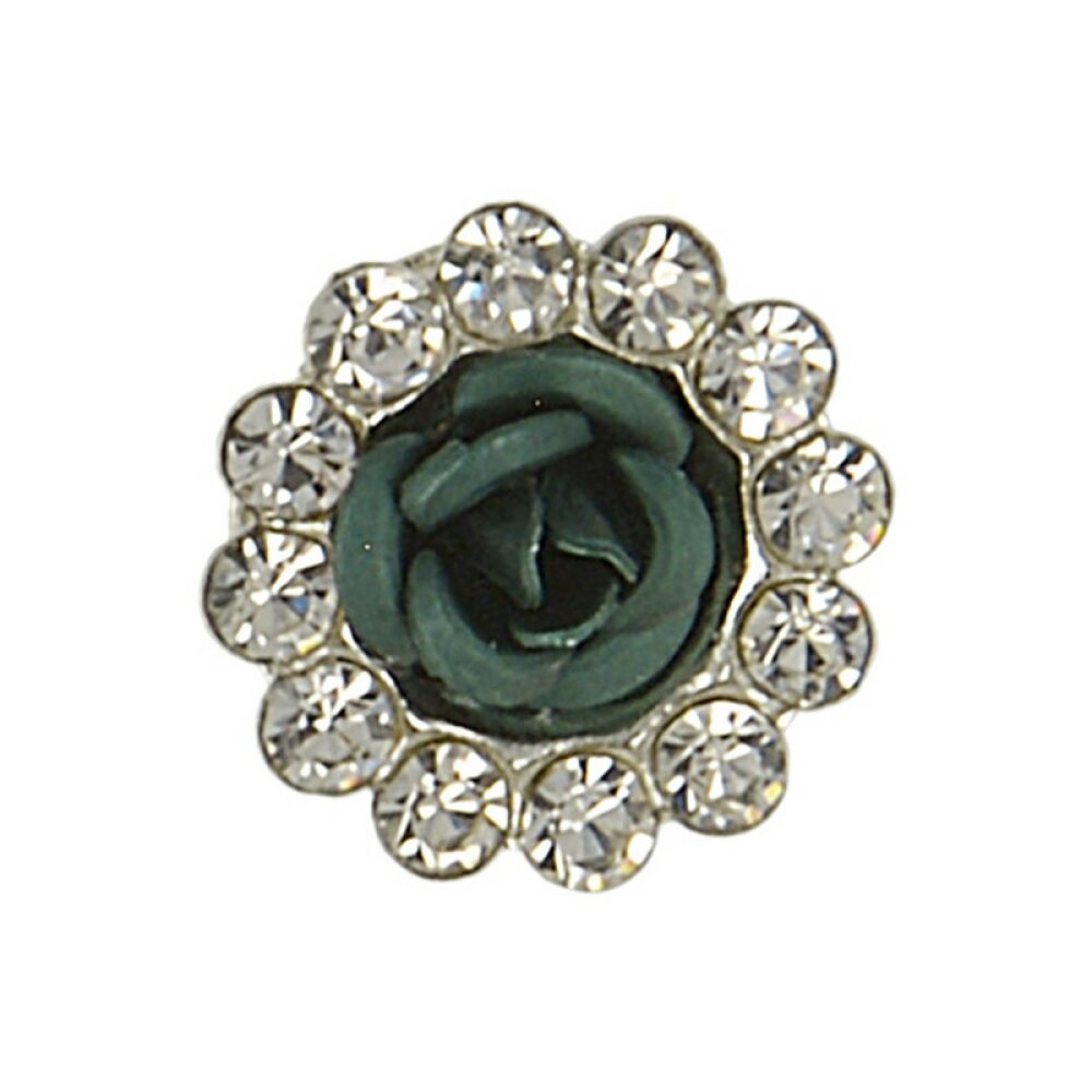 Bouton rose strass 12mm - Vert