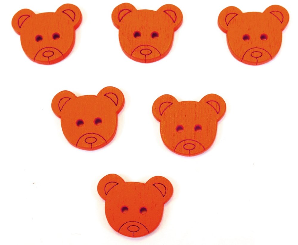 Lot 6 boutons bois : tete ours rouge 18*15mm