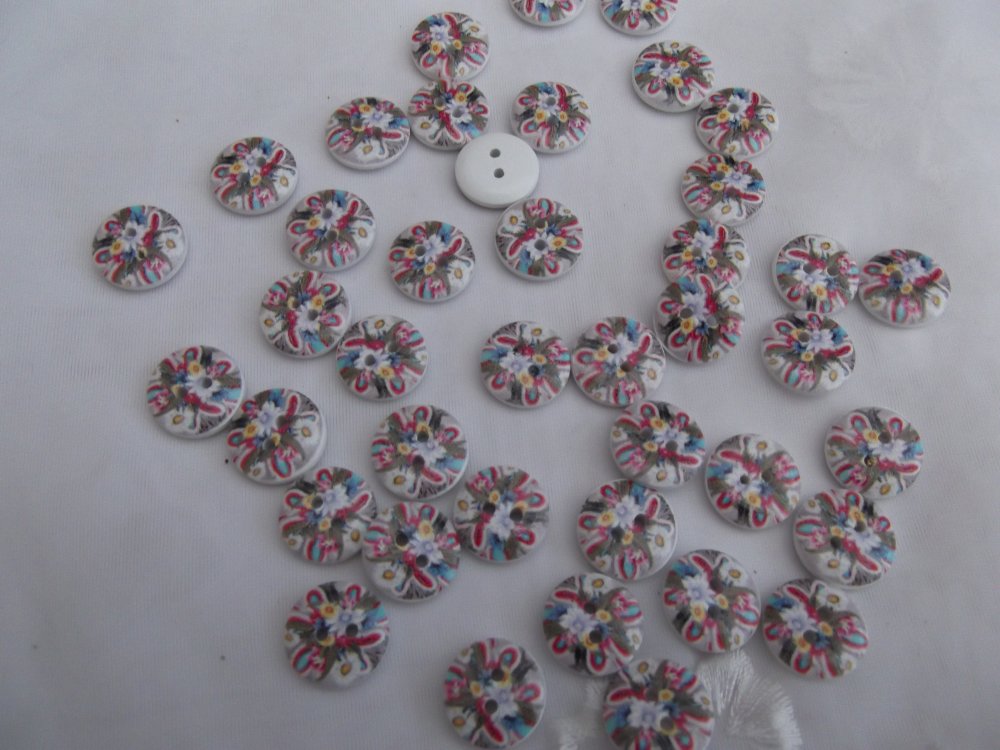 Lot de 10 boutons fleur 15x3.5mm bois blanc multicolore