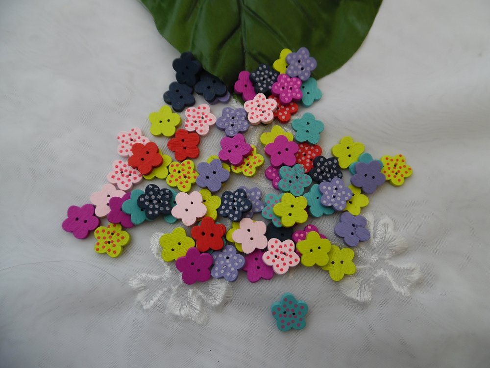 Lot de 10 Boutons fleurs à pois 15x3mm fuchsia bois