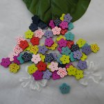 Lot de 10 Boutons fleurs à pois 15x3mm parme bois