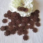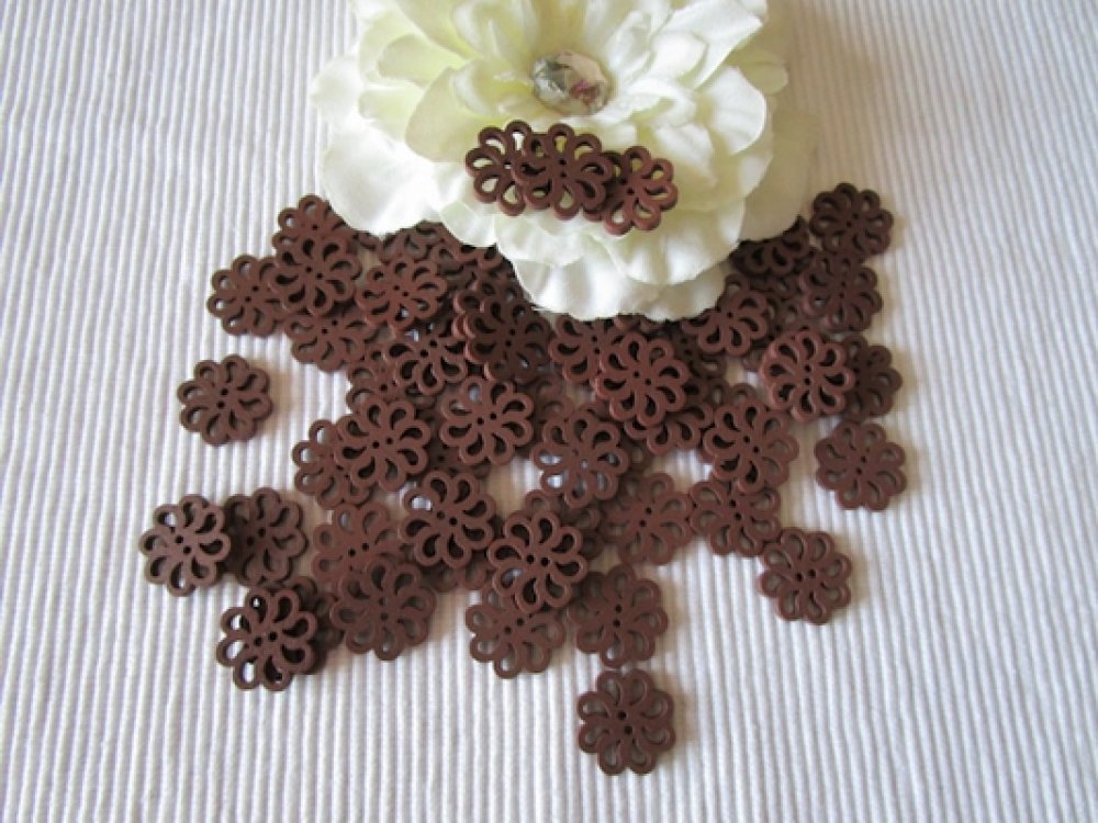 Lot de 10 Boutons fleurs ajourées marron 19x2.3mm bois