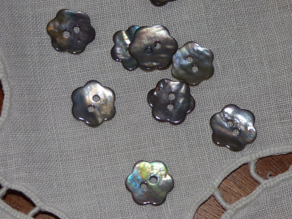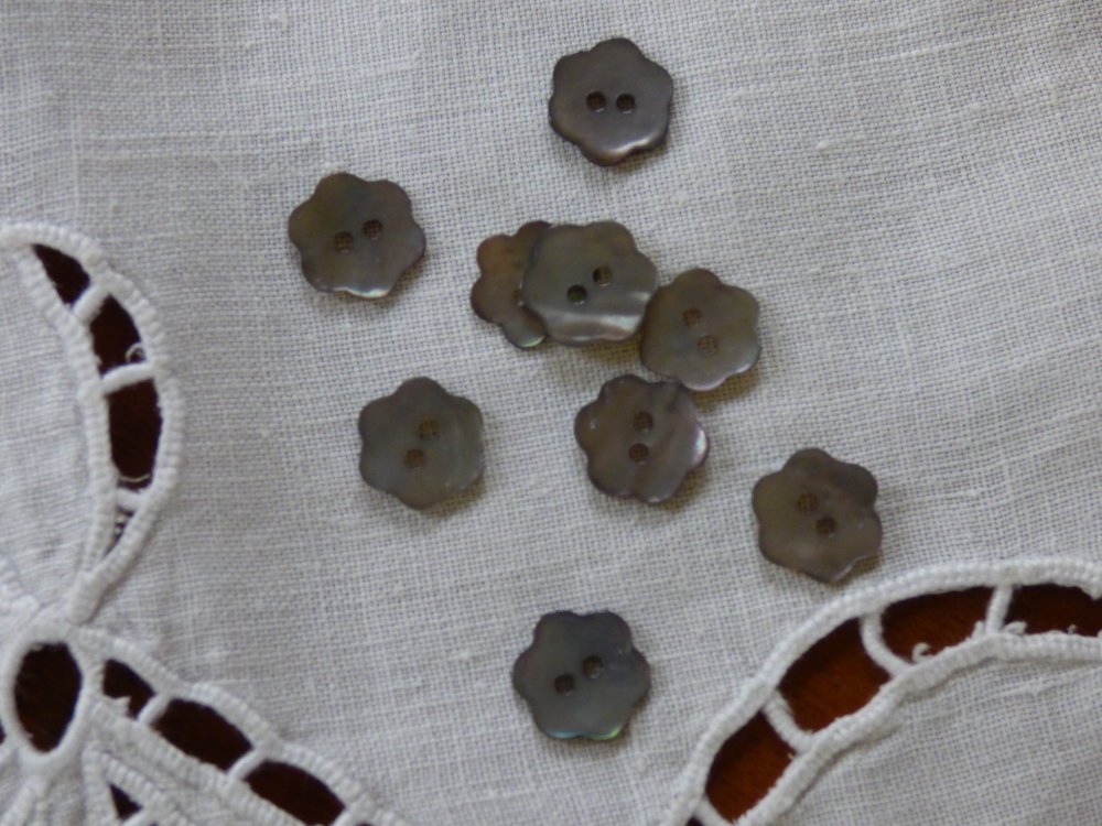 Lot de 4 boutons en nacre fleur coloris gris