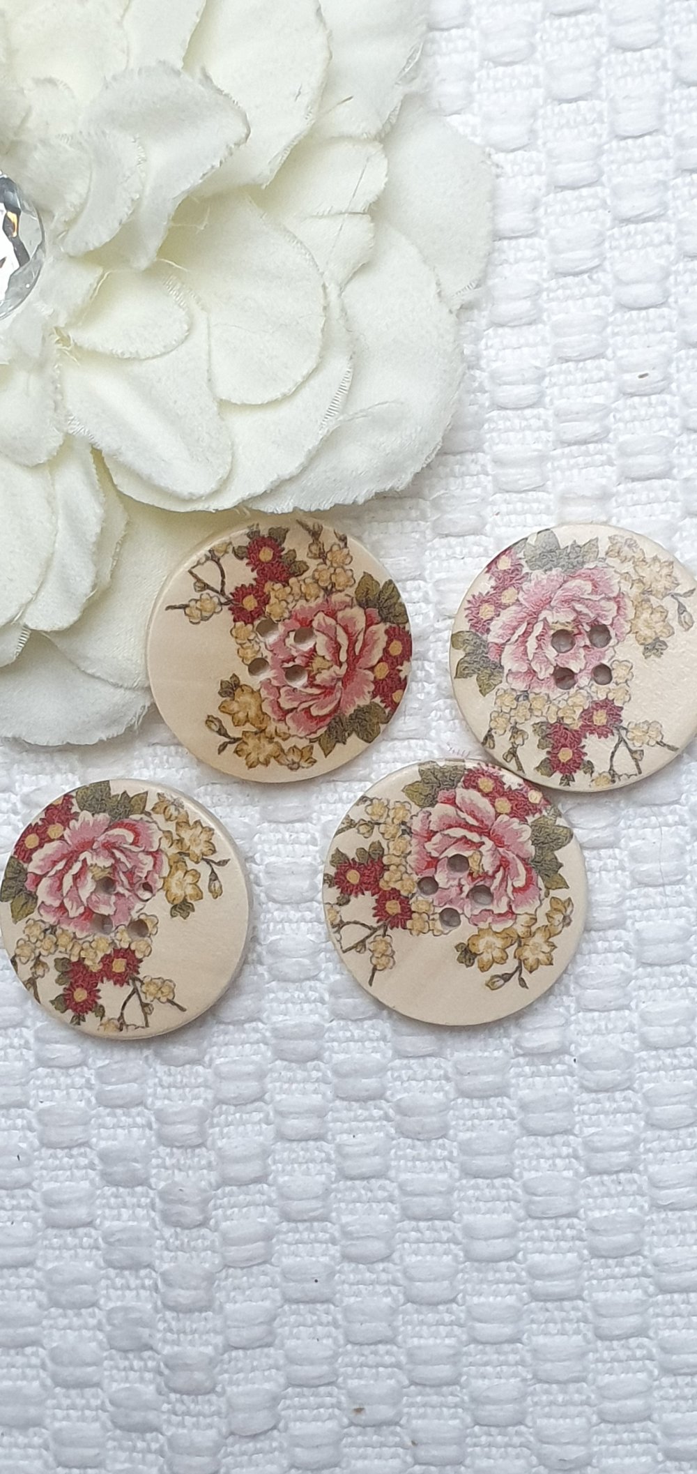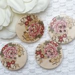 Lot de 4 Boutons fleur 30X5mm bois beige multicolore plat