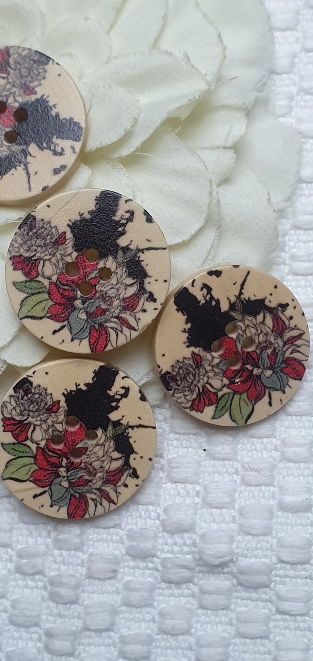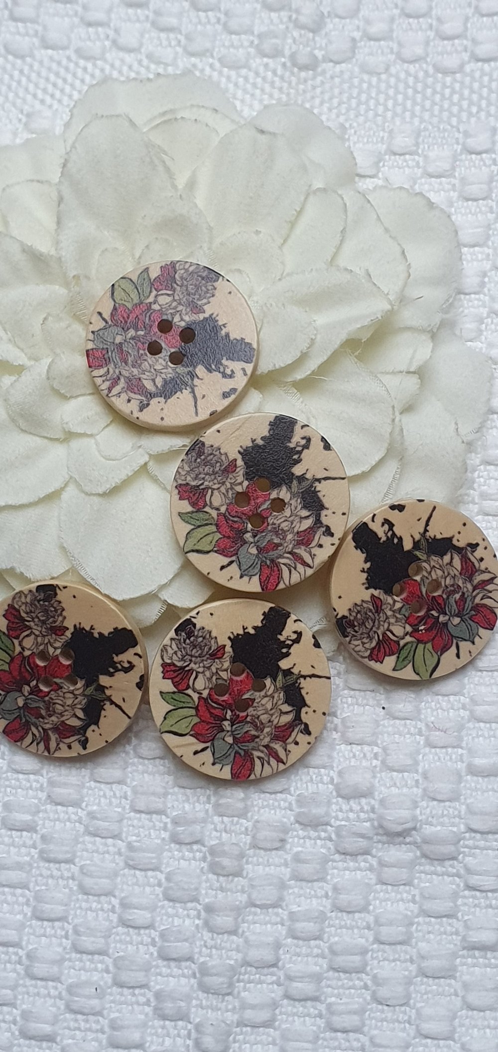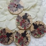 Lot de 5 Boutons fleur 30X5mm bois beige multicolore