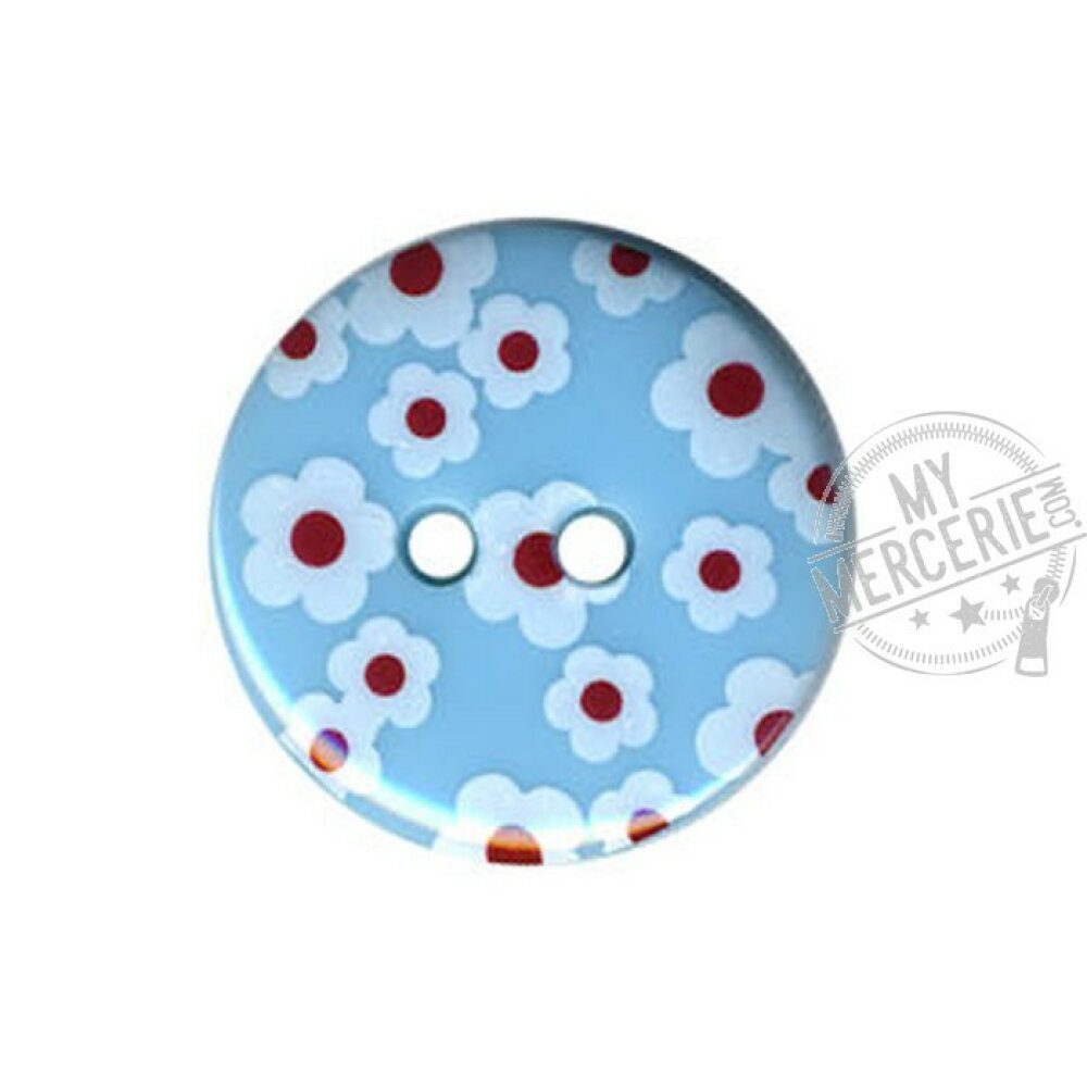 Lot de 6 boutons rond motif Fleur couleur Bleu ciel