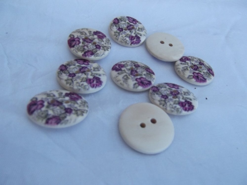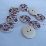 Lot de 6 gros boutons fleur violette 23x4mm bois beige multicolore